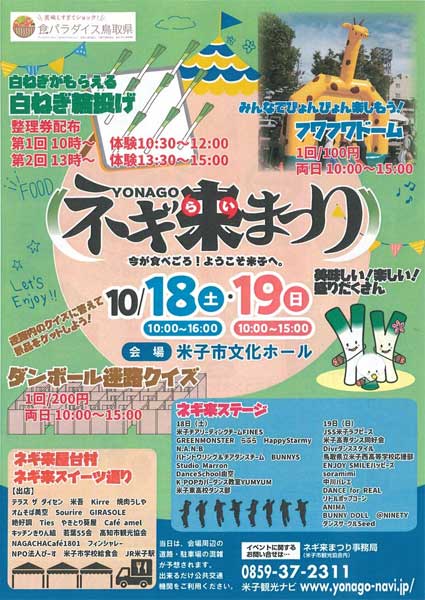 ●お問い合わせ先: 0859-37-2311(ネギ来まつり事務局)