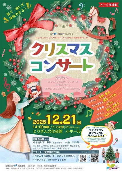 今回は聴いたことのあるクリスマスならではの楽しい曲や「くるみ割り人形」のお話を演奏付でお贈りします。