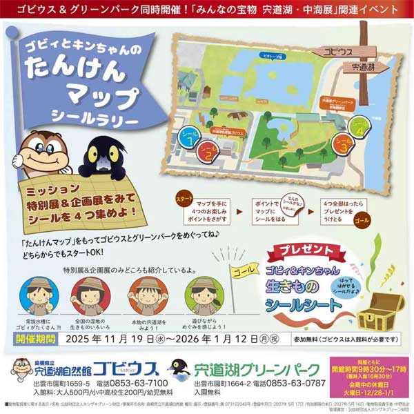 ●お問い合わせ先: 0853-63-7100(宍道湖自然館ゴビウス)
