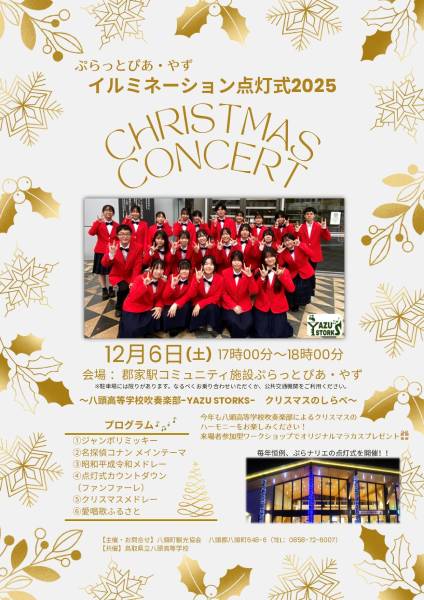 毎年恒例!郡家駅コミュニティ施設ぷらっとぴあ・やずにてイルミネーション点灯式とクリスマスコンサートを開催します。