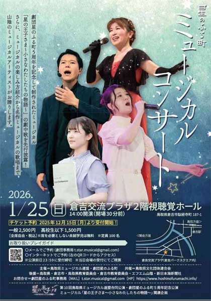 さらに、ミュージカルの楽しみ方紹介から名作ミュージカルの歌唱まで、山陰のミュージカルアーティストがお贈りします。