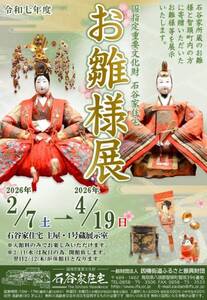 石谷家所蔵のお雛様と智頭町内の方に寄贈いただいたお雛様を展示いたします。 |