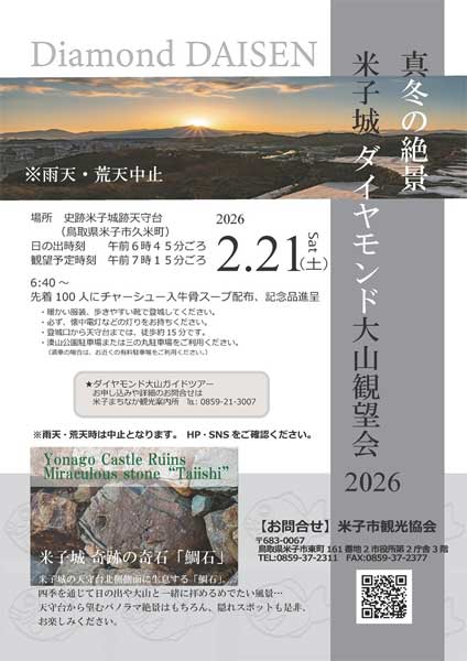 標高約90mの米子城天守からの眺めは、さえぎるものが何もない360°パノラマビジョンの世界。 |